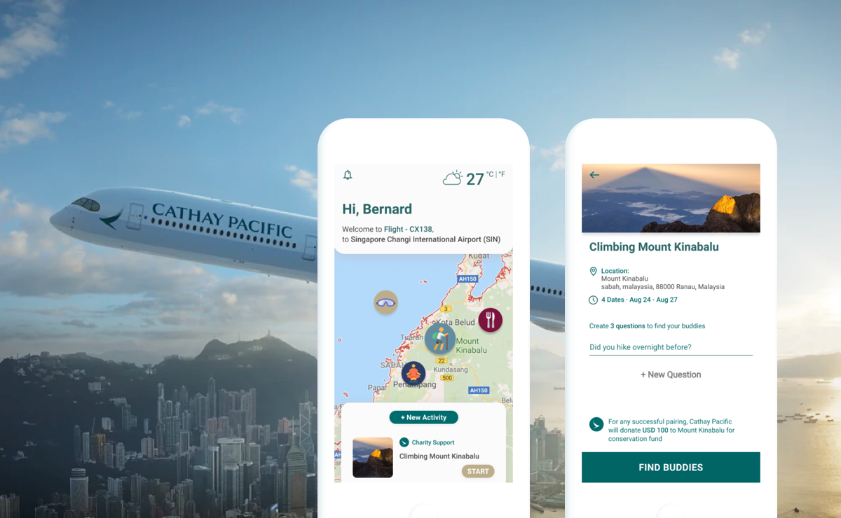 We come up with the idea of tavel-buddy platform, where mots of the passengers who are taking the same flight are suppose travelling to the same destination spot, it can be either leisure or a business trip. Passengers who is travelling alone or in-group can create or join exisitng events that raised by other passengers. With this idea, Cathay Pacific is connecting its own passengers from sky to land and the whole experience is being considered.
